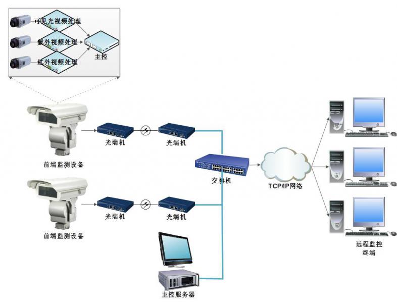 系統可實現對紫外、紅外和可見光圖像的遠程傳輸和監控, 超溫、電暈超標報警提示。通過遠程對攝像機控制,預制定位,遠程切換,自動巡視等。能夠支持多場所的中央監控,不受地理限制,多個用戶可同時監控同一前端,發生異常自動抓拍,同時自動啟動錄像機,具有很好的兼容性及可擴展性。提高運行人員對設備缺陷的識別能力和預見性。